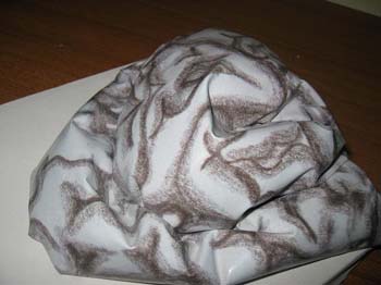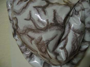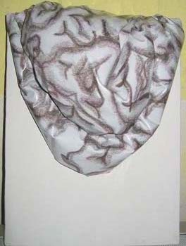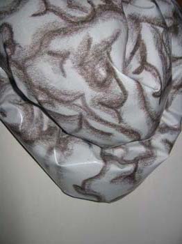 Scultura su tela. Cemento, foglio di plastica stampato, tela.