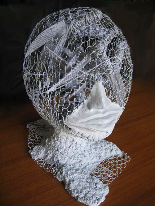 Sculpture made of concrete, wire netting, rope, paper, paint.