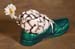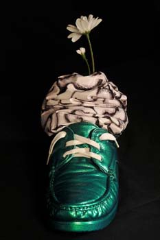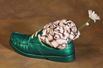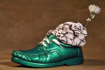 The shoe and artificial flower's green colour show the state of unaware relax.