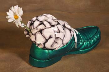 Il cervello è dentro a una scarpa da cui fuoriesce. Non è nella sua sede di funzionamento.