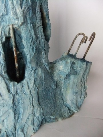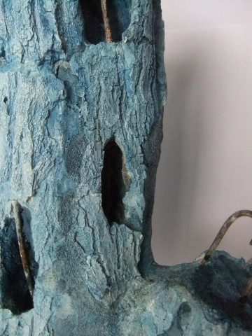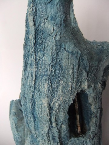 This sculpture reproduces a piece of tree, but it is not meant to be the true reproduction of a real tree. This is a tree made of concrete: it is easy to see and understand it is. It is a man-made manufacture and it has to be seen as such. It is a fake and it has to be seen as such. It is a ruined object. When we look at this piece of tree, it is as if we were already living in the future and watched a find of the past, the vestige of an age when man wanted to take the place of nature causing intolerable delusion. This work is entirely made of concrete and iron. The iron structure is visible because of some cracks and holes in the concrete.