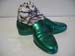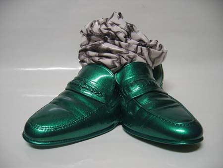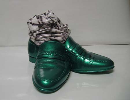 Due scarpe da uomo, una diversa dall’altra, s’intersecano diventando una cosa unica.