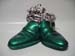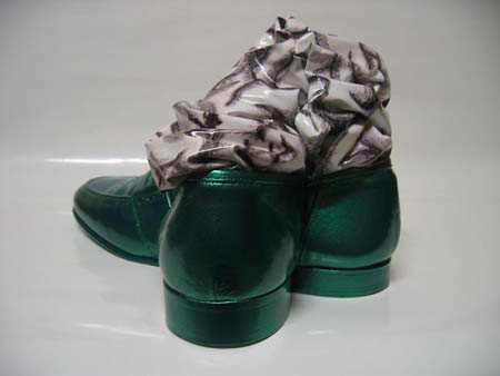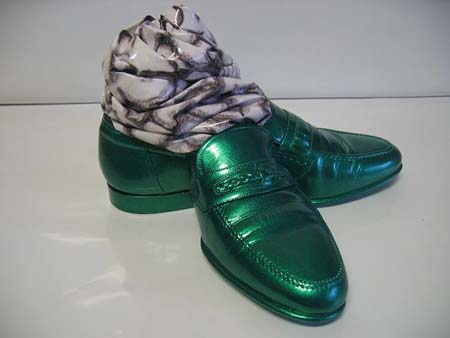 Sculture in cemento, scarpe, foglio di plastica stampato e vernice.