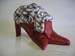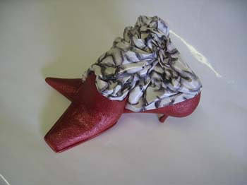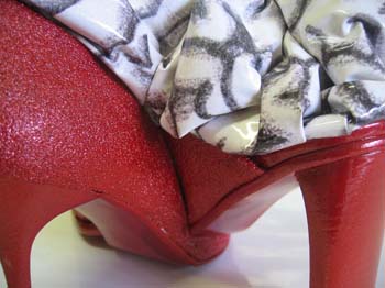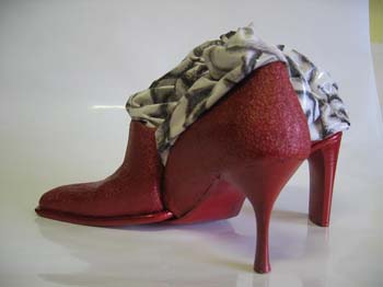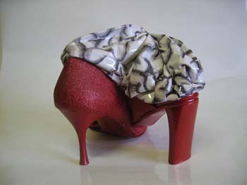 Due scarpe da donna, una diversa dall’altra, s’intersecano diventando una cosa unica.