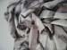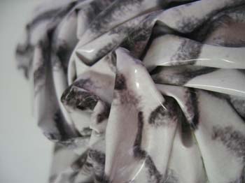 Sculpture made of concrete, shoes, printed plastic sheet, paint.