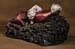 Scultura in cemento, pietre, foglio di plastica stampato, sandalo, vernice.