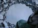 The shoe's back part stays on the rear while the tip faces this circle as if it stared into space.
