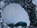 Sculpture made of concrete, shoe, printed plastic sheet, paint.