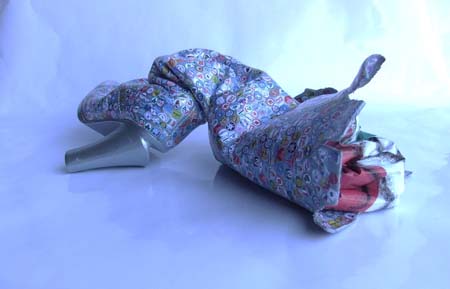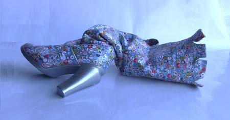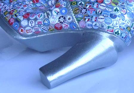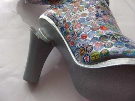 Scultura in cemento, stivale, foglio di plastica stampato, vernice.