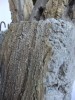 Pezzi di corteccia aderiscono ancora alla superficie.
