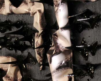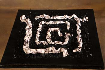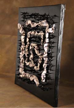 Scultura su tela eseguita con foglio di plastica stampato, spine di acacia, vernice.
