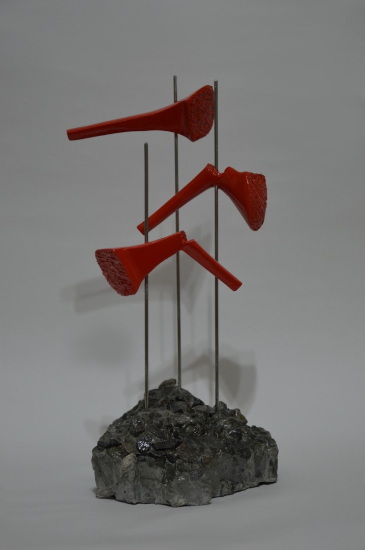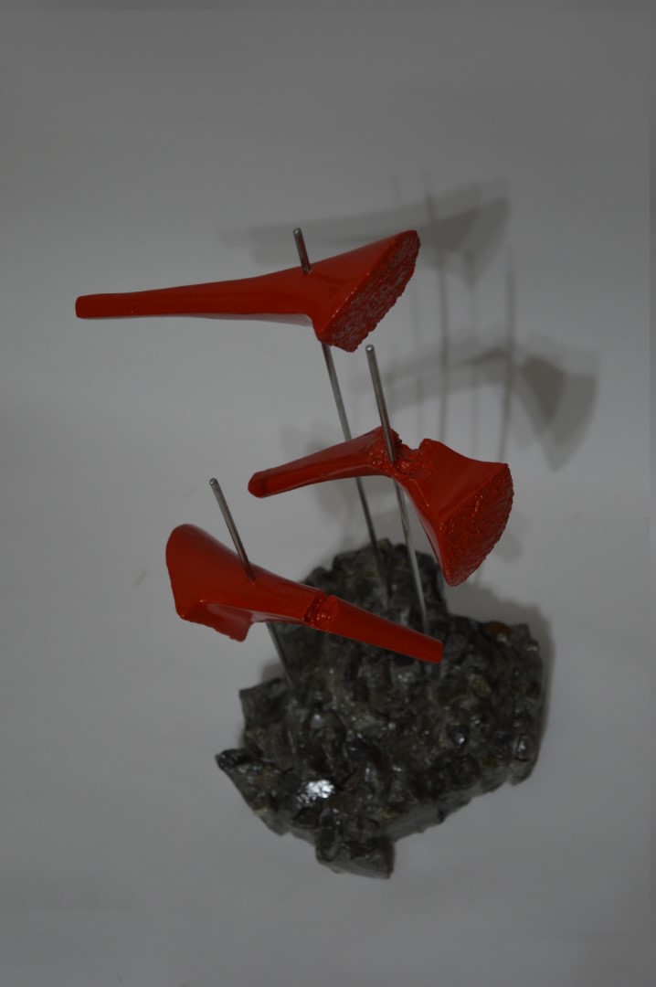 The work refers to femicide. The artist has created three concrete stiletto heels that are impaled on as many steel poles. Two heels are broken but one, despite having had the same fate, is not, and, soaring high, is the spokesperson for the message: "despite the abuses, we will not give up and we will continue to fight".