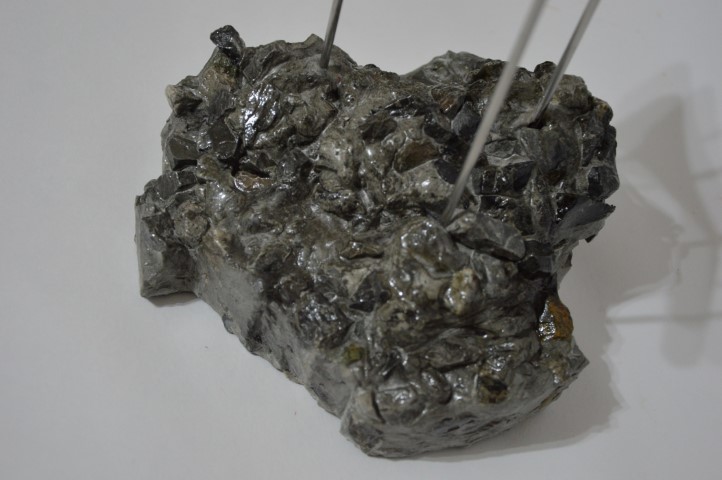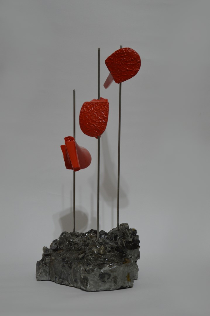 Sculpture made with concrete, steel, stones, paint. Size: cm 17x16x35 Weight: kg 1.9
