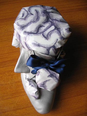 The brain is inside a shoe from which it overflows. It is not where it should work.