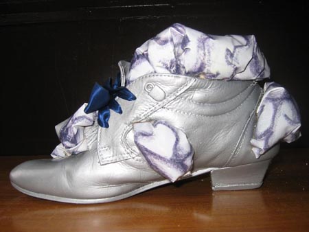 Scultura in cemento, scarpa, foglio di plastica stampato, vernice.