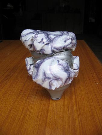 Sculpture made of concrete, wire netting, rope, paper, paint.