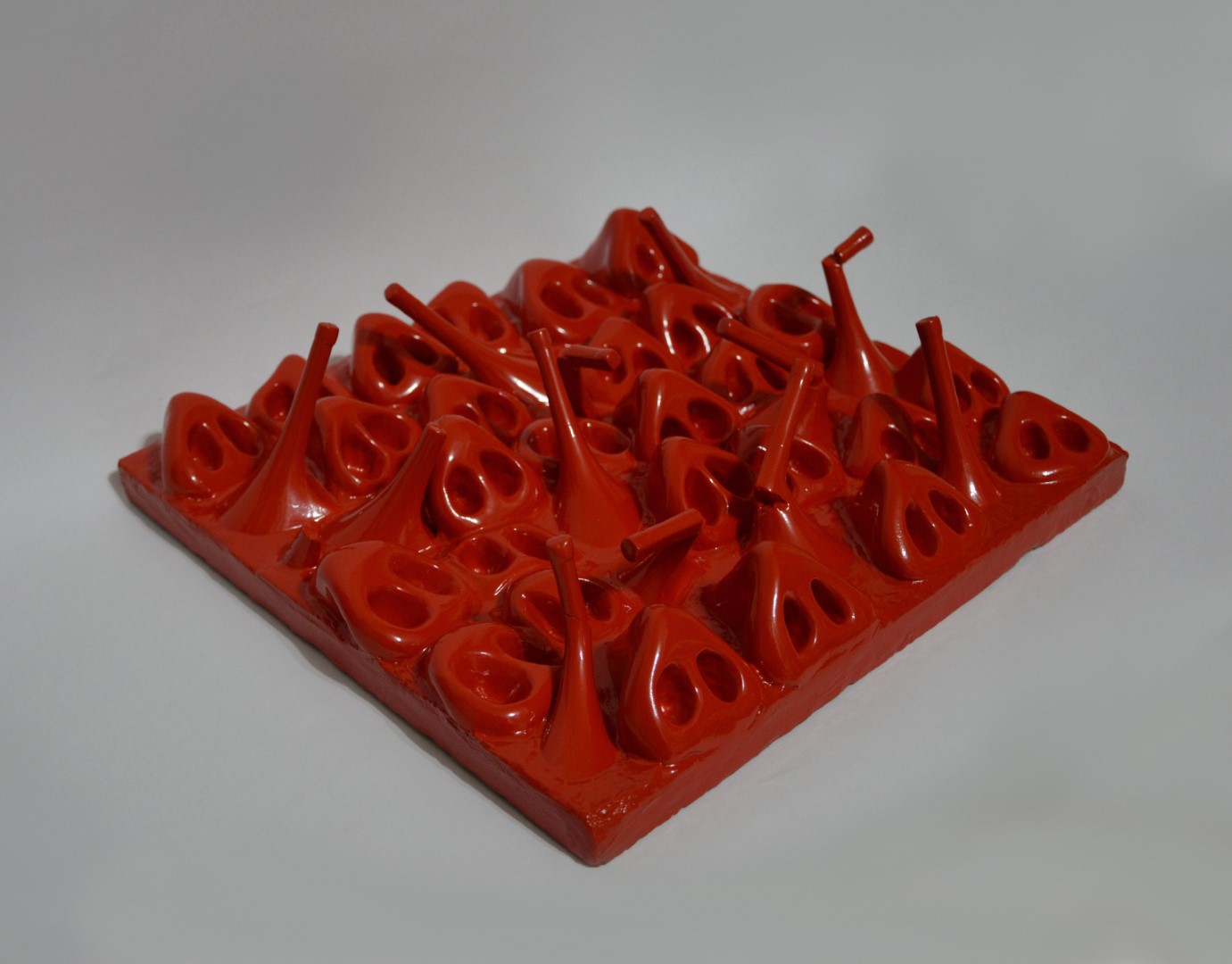 L’opera "Red Breath" si riferisce alle donne e al femminicidio, infatti l’artista, oltre ai nasi, ha inserito i tacchi a spillo ed il tutto è affogato nel colore rosso.