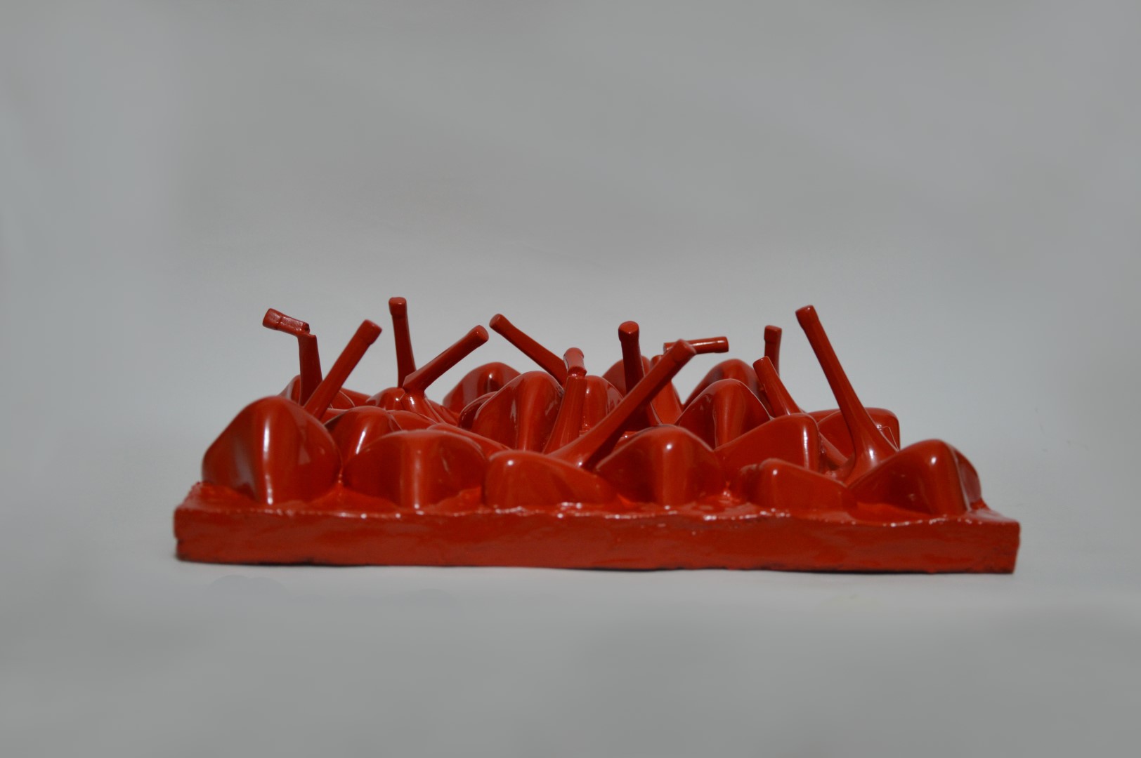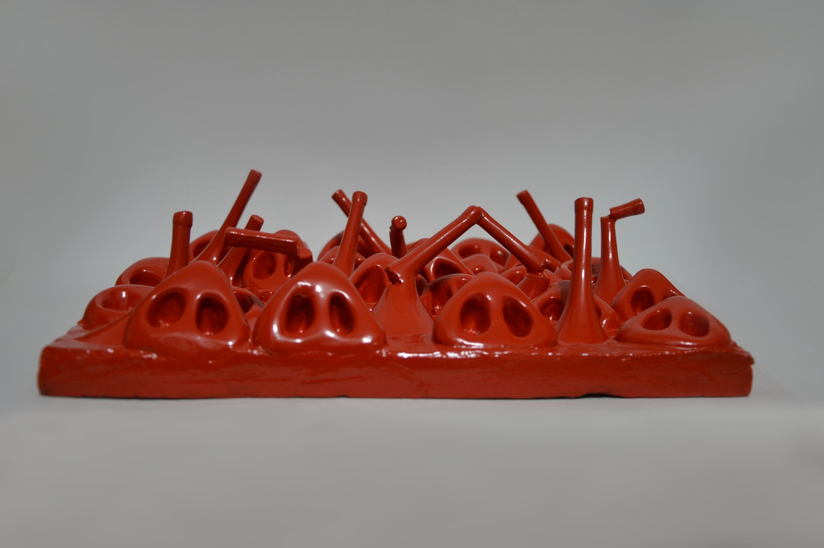 L’opera "Red Breath" fa parte della serie dei "Last Breath" dove i nasi umani emergono da una pece infida per prendere l’ultimo respiro.