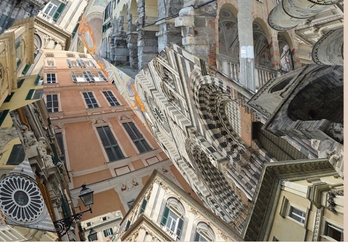 San Lorenzo n.2 è un collage con foto delle facciate di edifici che si trovano nella zona di San Lorenzo a Genova, nel cuore della città. Comprende edifici storici e il Duomo.