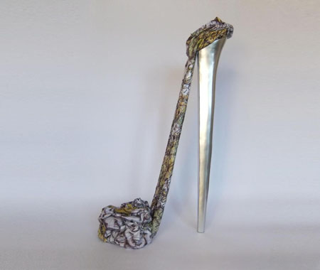 In the sculpture “Where Are We Going n.2” there is no upper vamp of the shoe but only its heel and its sole.