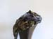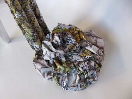 Sculpture made of concrete, shoe, printed plastic sheet, paint.